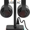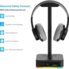 HomeShopComputer accessoriesKAFRI RGB Headphone Stand with USB Charger Desk Gaming Headset Holder Hanger Rack with 3 USB Charging Port and 2 Outlet – Suitable for Gamer Desktop Table Game Earphone Accessories Boyfriend Gift
